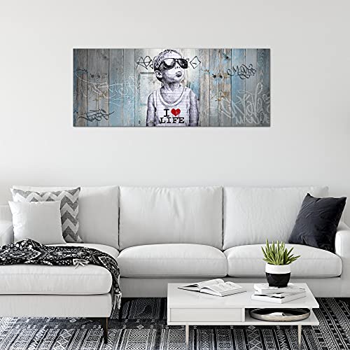 Runa Art Quadri Moderni Banksy Amo La Mia Vita 1 Pezzo L'immagine Tela Non Tessuta Soggiorno Corridoio Arte Di Strada Blu 039812a