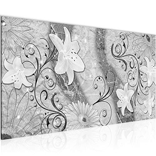 Runa Art Quadri Moderni Fiori Gigli Tela Non Tessuta Soggiorno Corridoio Grigio Bianco E Nero 207612b