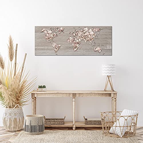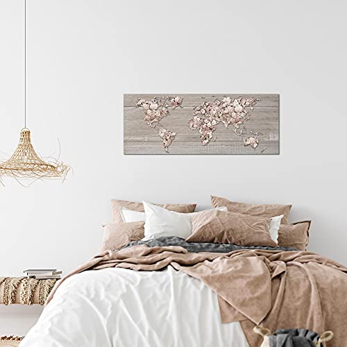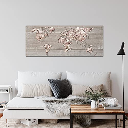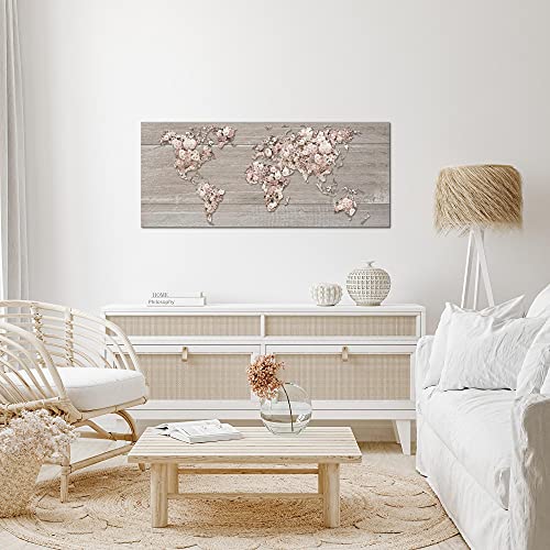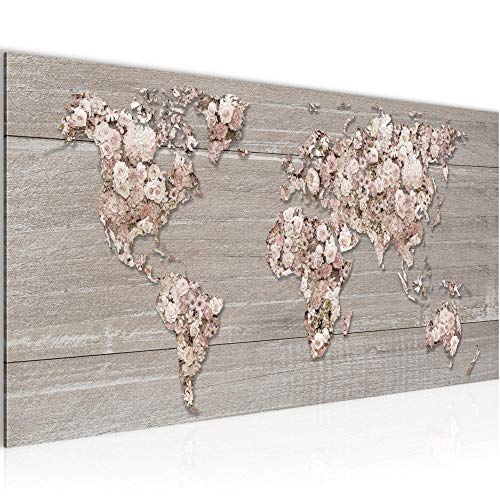 Runa Art Quadri Moderni Mappa Del Mondo Fiori Tela Non Tessuta Soggiorno Corridoio Parete Legno Beige Marrone 023212c
