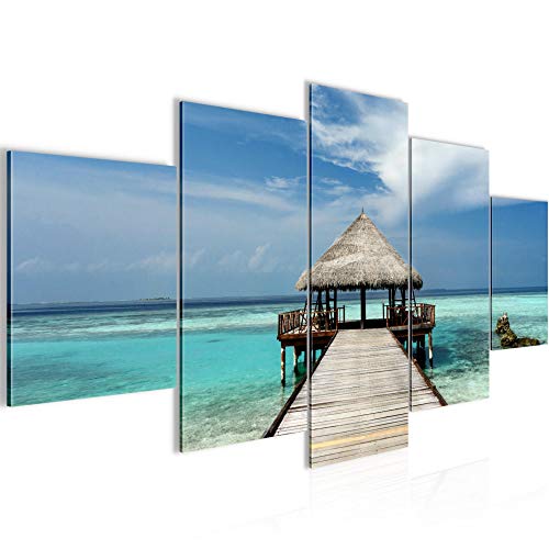 Runa Art - Quadri Spiaggia Mare 200 x 100 cm 5 Pezzi XXL Decorazione Murale Design Blu 611951a