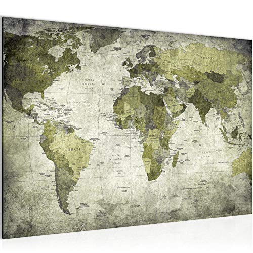 Runa Art Quadro Mappa Del Mondo Moderni Murale - Made In Germany - Vintage Antico Verde Corridoio 103415c