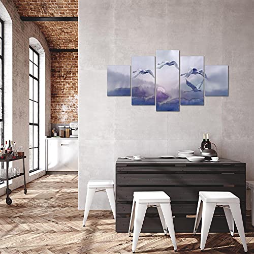 Runa Art Uccello Cigni Murali Tela Non Tessuta 5 Pezzi Cielo Grigio Viola Camera Da Letto Corridoio 023453b