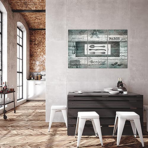 Runa Art Wood Di Cucina Quadri Soggiorno Grande Turchese Posate Vintage 120 x 80 cm 3 Pezzi Decorazione Murale 038031b