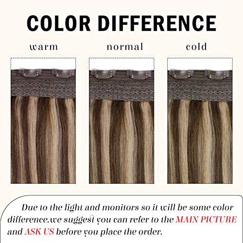 RUNATURE Extension Filo Capelli Veri 18 Pollice/45cm Extension Secret Wire Capelli Veri Marrone Highlight Bionda #4P27 Lisci Hair Invisible Filo Capelli Extension 80g