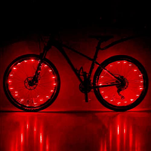 Runaup LED Luci per ruote di bicicletta, Upgrade 20 luci a raggi per bicicletta a LED, IP65 impermeabile Super luminoso Luce per ruota da ciclismo per guida notturna (Rosso)