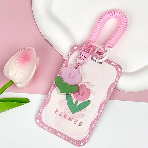 RUNBFUUY Photocard Holder Keychain, Pink tulip Kpop Photocard Holder, Picture Keychains, Keychain ID Card Holder, ID Student Card, Protective Photo Sleeves Pendant Keychain - B