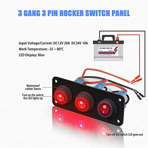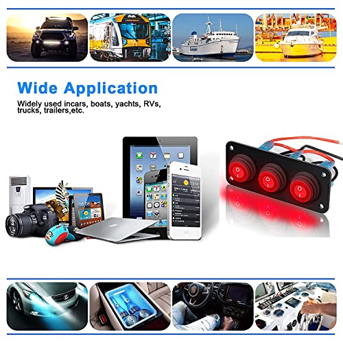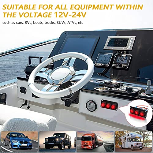 RUNCCI-YUN 12V-24V pannello interruttore impermeabili,Pulsante Interruttore Rotondo,3 Gruppi Pannello interruttori a levetta LED,Pannello Interruttori a Bilanciere per Auto, Barca, Camion (Rosso)