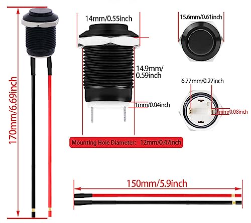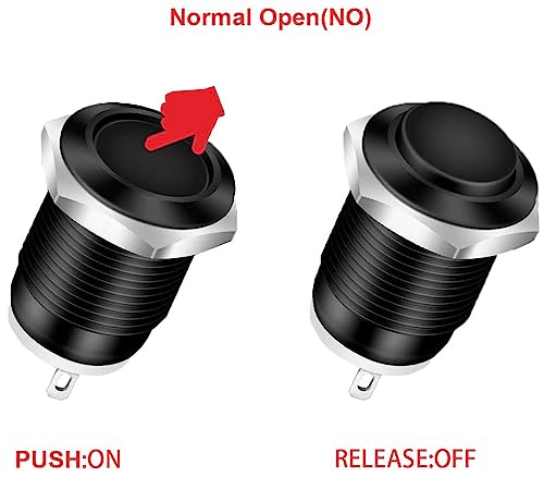 RUNCCI-YUN 5Pcs 2A 12V/24V/125V/250V 16mm Interruttore a Pulsante Interruttori a Pulsante momentaneo in Metallo Impermeabile SPST NO Interruttore momentaneo(Alta Testa)