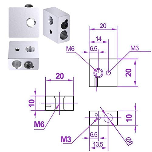 ★ [Blocco riscaldante MK8 in alluminio] - Dimensioni: 20 * 20 * 10 mm (L * W * H);