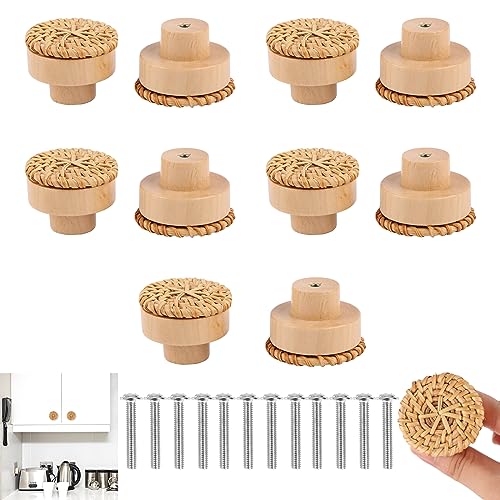 RUNEAY Pomelli per Mobili Rattan, Rattan Pomelli Cucina 10 Pezzi Pomelli per Mobili vintage Pomelli Legno Pomelli Cucina Pomelli per Mobili Naturali per Armadio, Cassetti, Mobili da Cucina(Φ40mm)