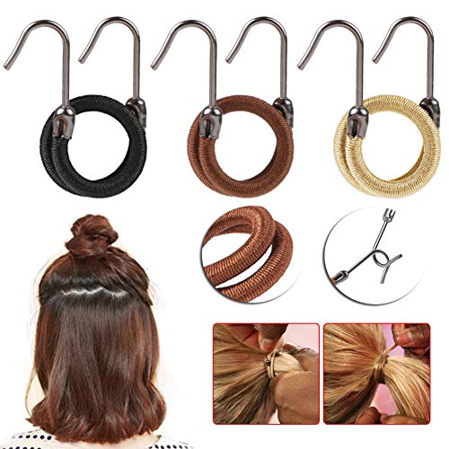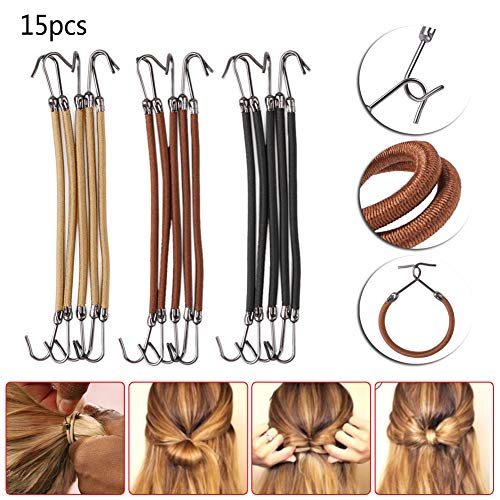 RUNGAO - 15 elastici per capelli in 3 colori, per donne e ragazze, con clip per coda di cavallo, in gomma, per fare chignon, accessori per lo styling dei capelli