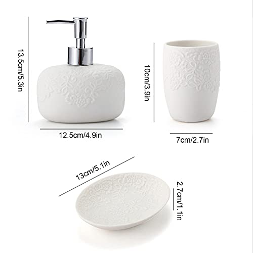 ★【 Articoli essenziali per il bagno】 Set completo di 4 pezzi, tra cui 1 dispenser di sapone, 2 bicchieri e 1 portasapone. Questo set di accessori da bagno in ceramica ti offre tutto il necessario per il lavandino del tuo bagno per organizzare e migliorare il tuo bagno in modo rapido e semplice.