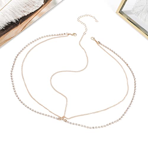 Runmi Catenella per testa, con strass, dorata, accessorio per capelli per festival, a strati, per spose e damigelle