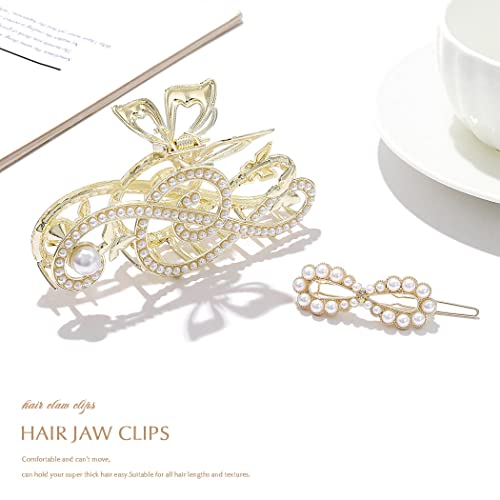 Runmi Clip per capelli con perline per capelli spessi, grandi fermagli per capelli antiscivolo per donne e ragazze, confezione da 2