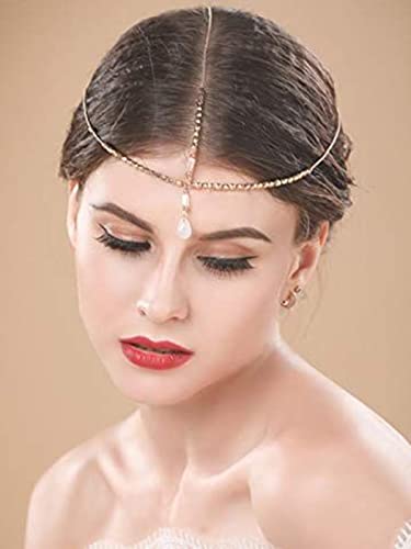 Runmi Copricapo da sposa in stile boho, fascia dorata, accessori per capelli da sposa per donne e ragazze
