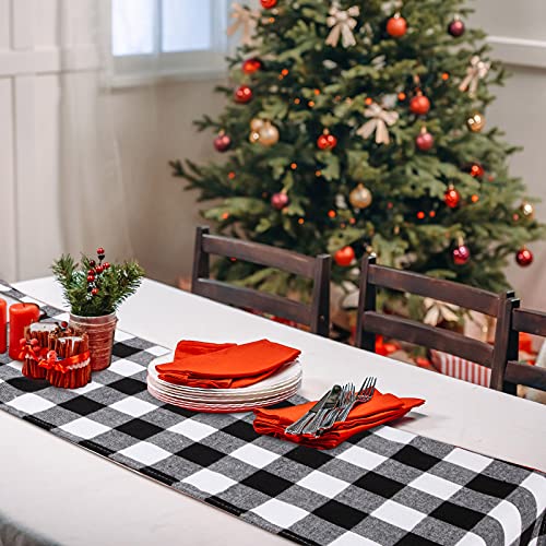 108 Runner da Tavola in Cotone Lino Scozzese Bufalo Runner da Tavolo a Quadri Rettangolari Decorazione per Tavola delle Feste a Scacchi per Ringraziamento, Natale, Compleanno (Nero, Bianco)