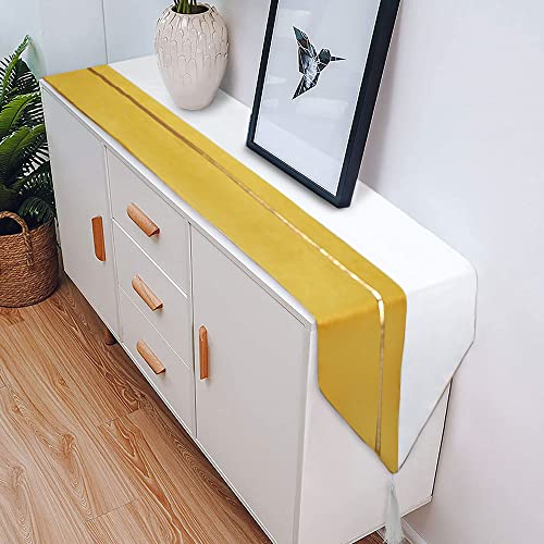 Design moderno: la striscia dorata sulla fodera del cuscino in velluto mostra un'idea di design elegante, audace ed eclettica. Bel colore abbinato bene. Il bellissimo ed elegante runner da tavolo nobile è l'arredamento perfetto per il tuo soggiorno. Si coordina bene con tavolo da pranzo, tavolino da caffè e tè, console TV, foyer, scrivania con libri, tavolo contenitore, tavolo da picnic e cassettiera.