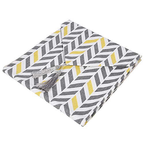 Runner da Tavola in Lino con Motivo Geometrico Moderno Stile Nordico Runner Decorativo Tovaglia con Nappa Copertura per Tavolo Lungo Decorazioni per Matrimonio,Feste (Grigio e Giallo)