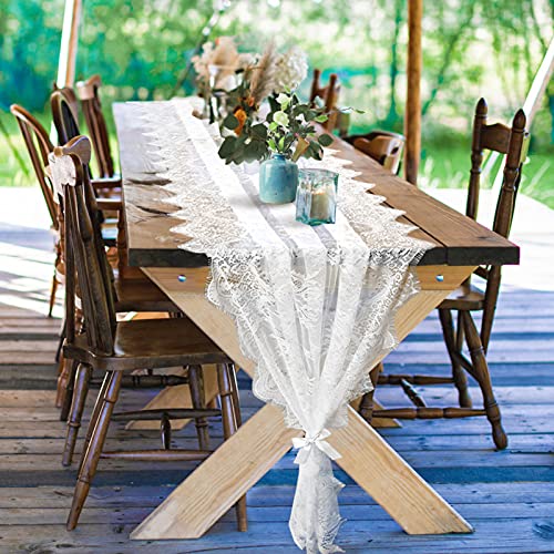 ❤ Multifunzione: il runner da tavolo in pizzo rustico è perfetto per un matrimonio bohémien, un matrimonio di campagna, una cena romantica a lume di candela, un baby shower, una festa prematrimoniale e può anche essere utilizzato come sciarpa da comò, runner da tavolino o un uso quotidiano
