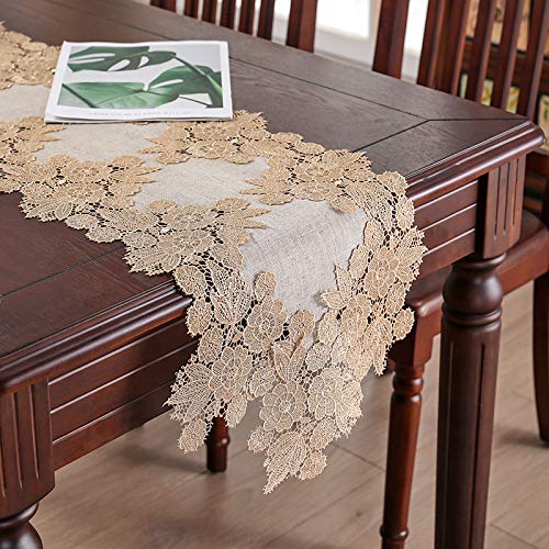 Runner da tavola in Pizzo Marrone con Fiori in Cotone e Lino per Feste Matrimoni Festival Decorazione 90 cm
