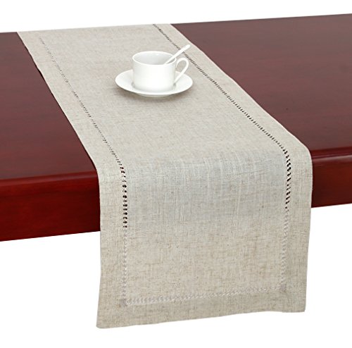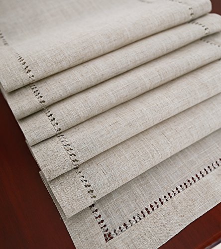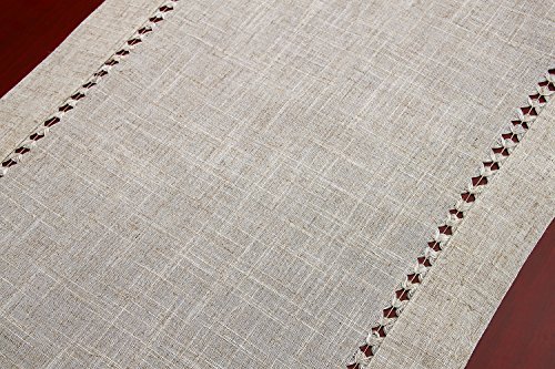 Runner da tavolo in rettangolare in pizzo orlato a mano, 50% poliestere/ lino/poliestere, natural, 14*72 inch
