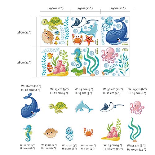 ❤️ CONTENUTO DELLA CONSEGNA - Articoli inclusi balena, delfino, tartaruga, cavalluccio marino, granchio, polpo, medusa, pesce palla, ecc. Forniamo decorazioni murali moderne di alta qualità per un'esperienza di benessere speciale nella tua casa.