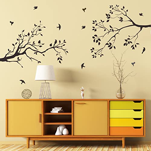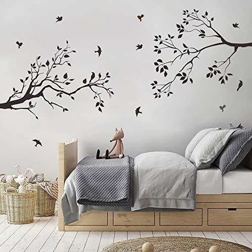Runtoo Decalcomanie artistiche da parete con rami di albero, uccelli neri, foglie, adesivi da parete per camera da letto, soggiorno, cameretta dei bambini