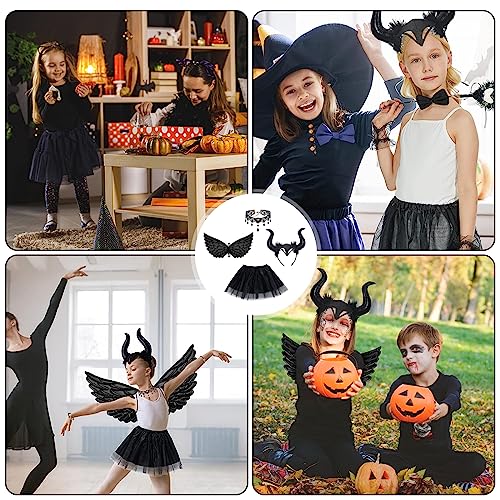 Runup Set di 4 costumi da diavolo per bambini, costume da carnevale include fascia per corna regina, ali d'angelo, tutù gonna e collana in pizzo gotico, accessori per cosplay carnevale