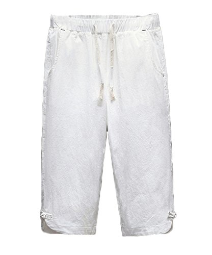 Runyue Uomo Pantaloni Cargo Casuali Vita Alta Sportivi Pantaloncini di Lino Elasticizzato Regular Fit con Coulisse