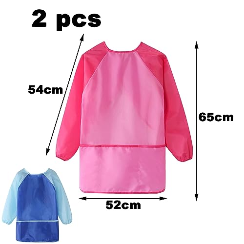 RUOJLING 2Pcs Grembiule Bambini Asilo,Grembiule Pittura Bambini,Grembiule Impermeabile Bambini Maniche Lunghe,Per Pittura,Lavoretti,Cucinare,Argilla,Per Bambini 3~8 Anni (Blu+Rosa)-L