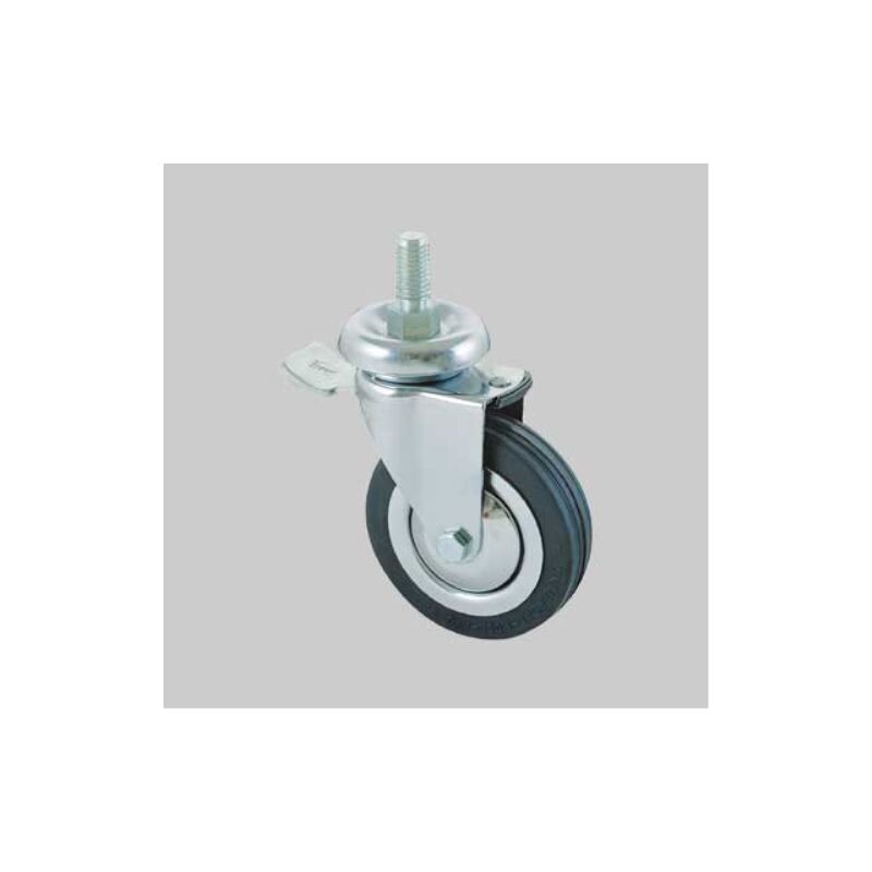 Supporto a perno filettato girevole in acciaio rotante su corona di sfere. Rivestimento in gomma con parafili e flange in acciaio stampato, rotante su cuscinetti a sfera. Ruota arredamento art. 155bisb avo c/freno 100x24 mm - fil. m12 - portata 80 kg ALDO VALSECCHI Ruote avo