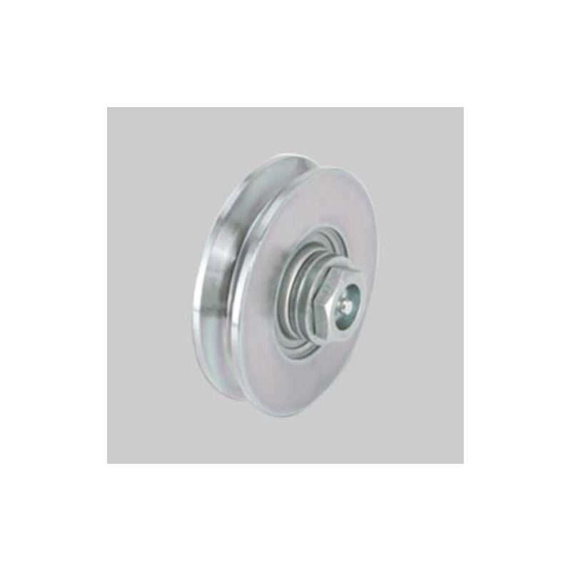 Gola Y. In acciaio zincato. A 2 cuscinetti a sfera con ingrassatore. Ruota con bullone per cancelli c/ingrassatore 140 mm Ruote e battenti per cancelli