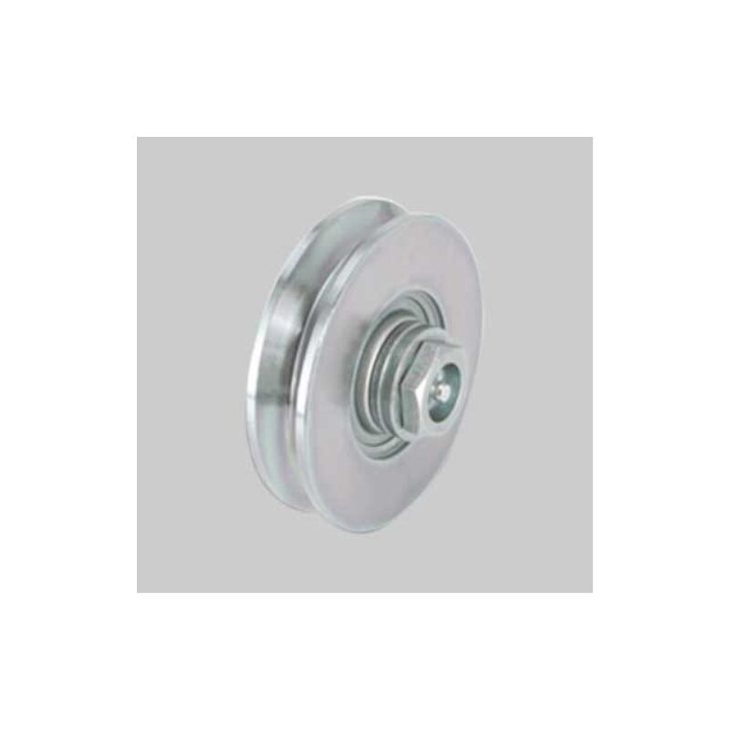 Gola Y. In acciaio zincato. A 2 cuscinetti a sfera con ingrassatore. Ruota con bullone per cancelli c/ingrassatore 120 mm Ruote e battenti per cancelli