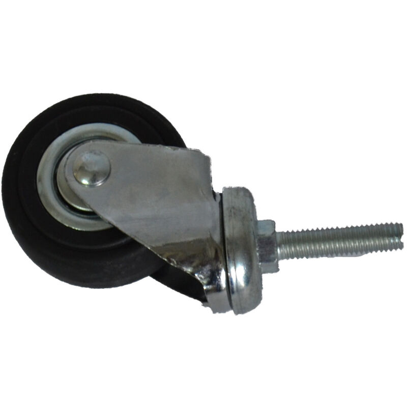 Ruota - Marca Rocarr - Supporto rotante - Perno filettato - Diametro 60 mm - Portata max 50 kg Ruota Rocarr in gomma nera con supporto rotante in acciaio zincato e perno filettato. Diametro 60 mm. Portata massima 50 kg.