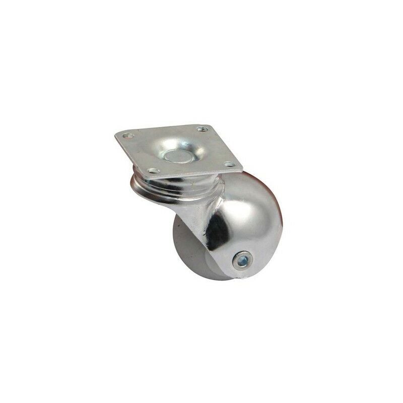 Ruota cromata a sfera con piastra Ø40 carico massimo 30 kg.