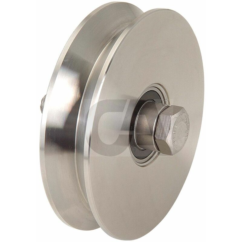 Ruota 2 cuscinetti gola V INOX Tubolare 40 Mod. 407IX.100x40 SKU: ARU040706IX Ruota inox 2 cuscinetti gola V Misura: Ø100 Tub. 40 TAVOLA TECNICA Ø: 100 Tub. 40 pz/pcs: 6 C: 33 ØG: Ø77 sp: 28 bullone: M14x70 cusc: 2 portata: 410 kg. Binario: 906IX Garanzia 24 mesi