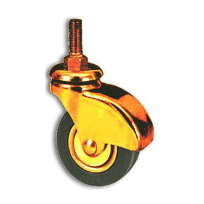 RUOTA PIROETTANTE IN PLASTICA corpo in lamiera ottonata, ruota in PVC, adatta a tutti i tipi di pavimenti da interno Portata 12kg Misura perno: M8x16mm DIAMETRO 40mm