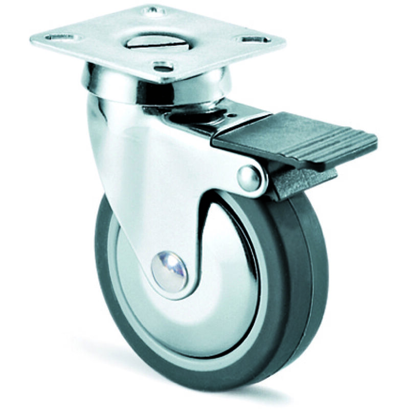Avo ruota girevole per mobili+freno art.220cbis mm.80-piastra mm. 60x60 In gomma, supporto in acciaio cromato rotante su doppia corona di sfere, con bloccaggio ruota. Articolo produttore: SC2200F080COG