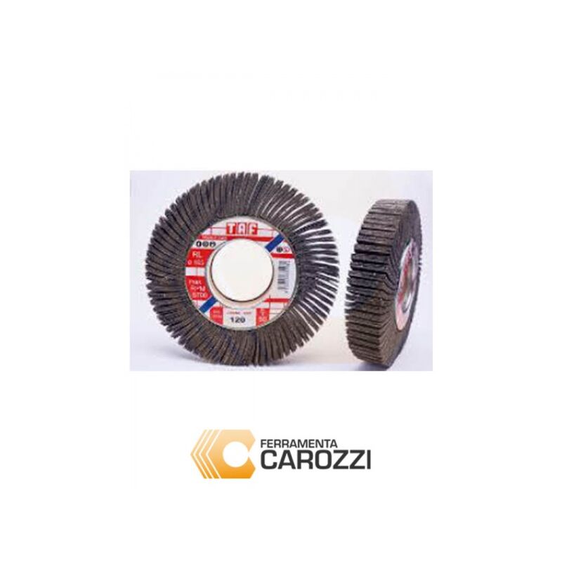 Ruota lamellare flangiata al corindone delle dimensioni di 165x30 mm per smerigliatriciutile per lavorazioni su acciaio e leghe speciali, metalli non ferrosi.Disponibile con 12 diverse tipologie di grana (40-50-60-80-100-120-150-180-220-240-280-320).Il montaggio su smerigliatrice richiede una coppia di flange per riduzione disponibili nello store online Ferramenta Carozzi.Foro centrale della ruota lamellare di 54 mm1 pezzo per confezione Pezzi per confezione: 1 foro centrale ruota lamellare: 54 mm Materiale: corindone Diametro x Altezza: 165x30 mm Grana disponibile: 40-50-60-80-100-120-150-180-220-240-280-320