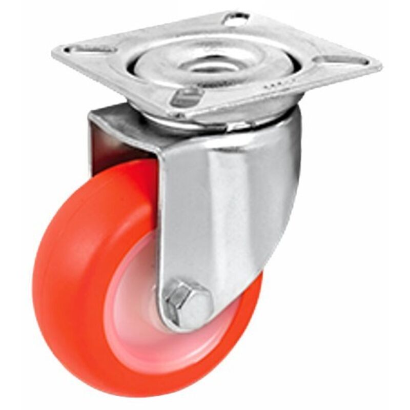 Ruota poliuretano iniettato Colore rosso Nucleo poliammide 6 Colore bianco Boccola Supporto leggero girevole Adatta in collettività e ristorazione d.40 h 61 kg 40 d.50 h 67 kg 55 d.60 h 83 kg 70