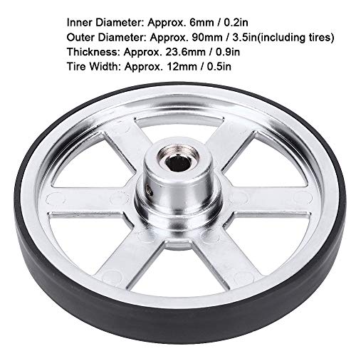 Ruota del robot, battistrada in neoprene, ad alta resistenza, parti in metallo industriale di buona trazione in metallo, albero in acciaio tipo D da 6 mm, diametro esterno 90 mm diametro interno circa
