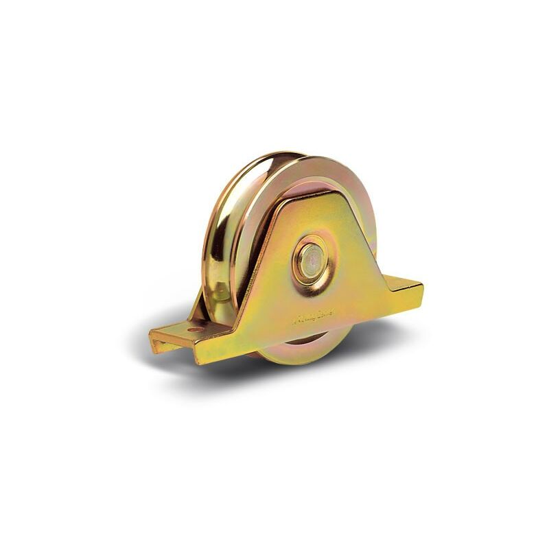 Ruota con supporto scanalata gola tonda - PSO in ferro per cancelli scorrevoli in C45 normali a 2 cuscinetti Rolling Center Misure come da immagini.