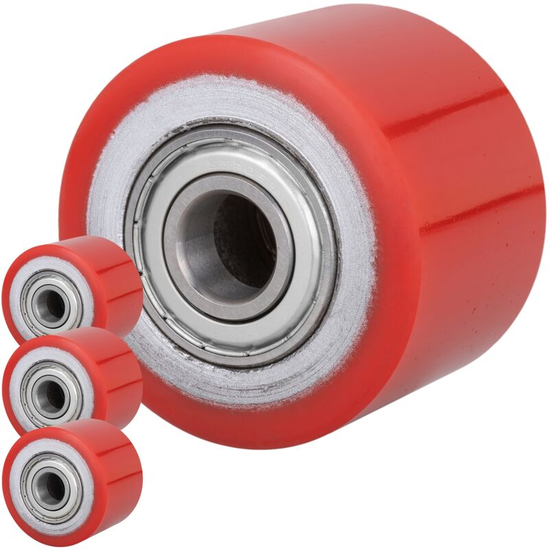 Ruote in poliuretano rosso di alta qualità con grande resistenza per transpallet e carrelli di trasporto. Ogni rullo è strutturato da un battistrada in poliuretano, con all'interno un tubo di rinforzo in ferro e con cuscinetti in acciaio che ne smussano la rotazione. Caratteristiche del prodotto: CARATTERISTICHE: La possibilità di girare ogni ruota di 360° permette di cambiare la direzione del movimento in modo estremamente fluido e semplice, il che rende ancora più facile il trasporto del carico. FUNZIONALITÀ: Le ruote garantiscono una maggiore operatività e ne facilitano l'utilizzo nei lavori che richiedono un movimento costante. IDEALE: Per la sostituzione delle ruote per transpallet in caso di usura o rottura. CARICO SUPPORTATO: ogni ruota supporta un carico di 700 kg. Consente una rotazione regolare con sicurezza garantita grazie ai suoi materiali resistenti. DESIGN: Confezione da 4 rulli rossi con cuscinetti in acciaio dorato e un tubo in acciaio all'interno. MATERIALI: La ruota
