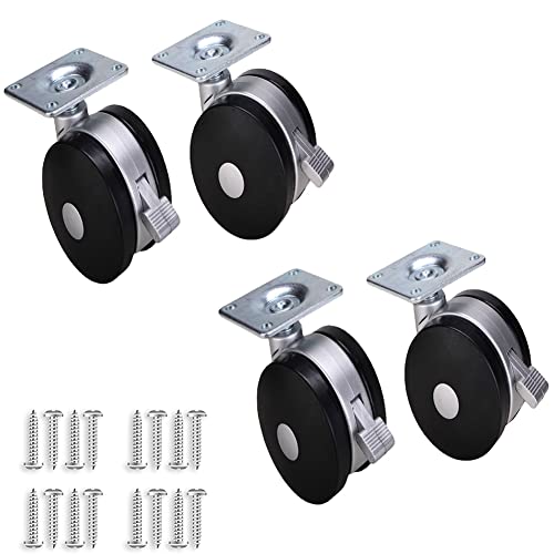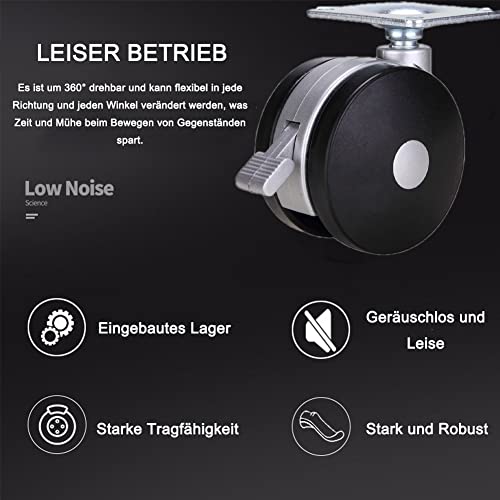 Set di 4 ruote per carichi pesanti, 74 mm, ruote per il trasporto con freno, fino a 400 kg, ruote girevoli a 360°, ruote doppie per mobili da spiaggia, colore nero