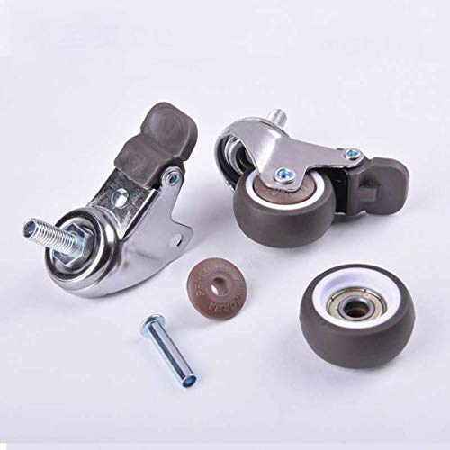 Ruote Girevole con M6 Perno Filettato,Ruota Per Carrello,Rotelle in Gomma per Mobili,Ruote Girevoli per Gabbia per Cani,Trasporto Ruote,4 Pezzi,Carico Massimo 48KG(Brake+universal32mm/1.25in)