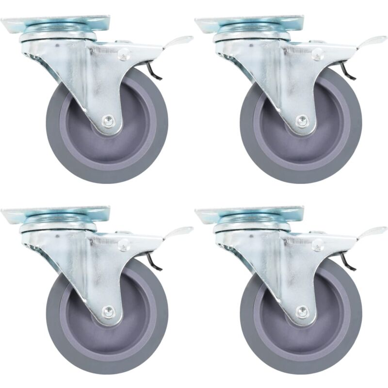 Questo set di 4 ruote girevoli dotate di doppio freno, sarà l'accessorio perfetto per attrezzature e mobili di piccole dimensioni come banchi da lavoro, carrelli, tavolini da caffè, piantane, scaffali, carrelli della spesa, ecc. Le ruote sono realizzate in TPR (gomma termoplastica), un materiale che si distingue per una buona resistenza agli urti e alle vibrazioni e che consente alle ruote di girare in modo fluido e silenzioso. La loro superficie morbida, inoltre, protegge efficacemente il pavimento dai graffi. La struttura in ferro zincato è altamente resistente alla ruggine e garantisce maggiore robustezza e durata delle ruote. Le ruote girevoli sono dotate di un doppio sistema frenante per garantire una maggiore flessibilità di utilizzo. Ogni ruota ha una capacità di carico massima pari a 45 kg. La consegna include 4 ruote girevoli con doppio freno. Colore: Grigio Materiale: TPR (gomma termoplastica) e ferro zincato Diametro della rotella: 75 mm Larghezza della ruota: 27 mm