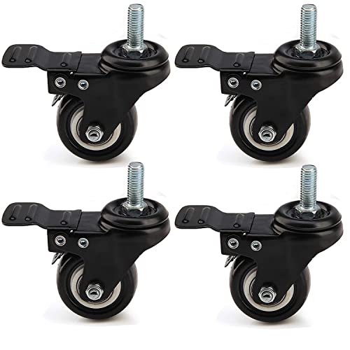 4 ruote girevoli M8 x 25 mm in PU, ruote girevoli per mobili, ruote di ricambio, resistenti 200 kg (con freni)