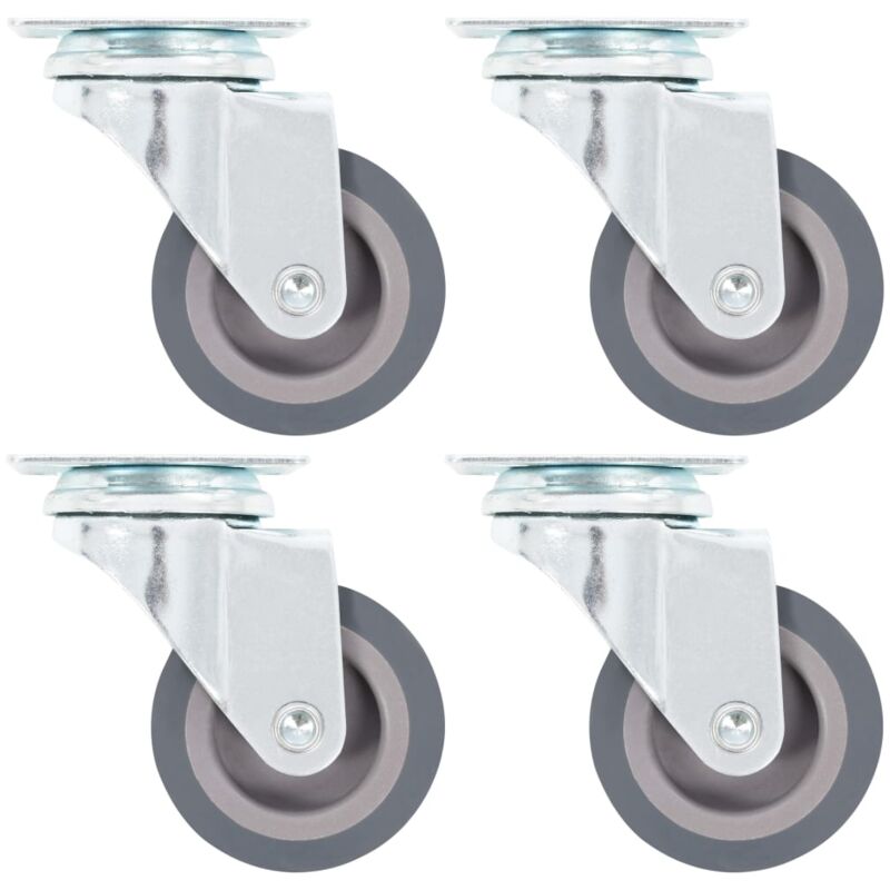 Questo set, composto da 4 rotelle girevoli, costituisce l'accessorio perfetto per attrezzature e mobili di piccole dimensioni come banchi da lavoro, carrelli, tavolini da caffè, piantane, scaffali, carrelli della spesa, etc. Le ruote sono realizzate in TPR (gomma termoplastica), un materiale caratterizzato da un'ottima resistenza agli urti e alle vibrazioni e che consente alle ruote di girare in modo fluido e silenzioso. La loro superficie morbida, inoltre, protegge efficacemente il pavimento dai graffi. La struttura in ferro zincato è altamente resistente alla ruggine e fornisce una maggiore robustezza e durata alle ruote. Ogni ruota possiede una capacità di carico massima di 35 kg. La consegna include 4 ruote girevoli. Colore: Grigio Materiale: TPR (gomma termoplastica) e ferro zincato Diametro della ruota: 50 mm Larghezza della ruota: 20 mm Dimensioni piastra: 50 x 50 mm (L x P) Distanza del foro: 36 x 36 mm Altezza di costruzione: 70 mm Capacità di carico massima: 35 kg (per