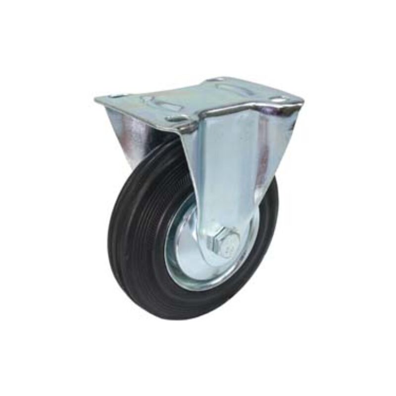 Ø mm.125 piastra mm.115x85 ruote in gomma piena nera, con cuscinetti, nucleo ruota e supporto in lamiera stampata e zincata Categoria merceologica: Ruote - Ferramenta - Ruote industriali
