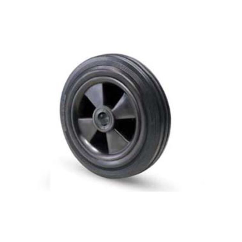 Ø mm.200x50 - foro ø mm.20 205dan ruota con rivestimento in gomma piena nera sh a 83 - nucleo in materiale termoplastico nero ad alta resistenza con boccola in materiale plastico Categoria merceologica: Ruote - Ferramenta - Ruote industriali
